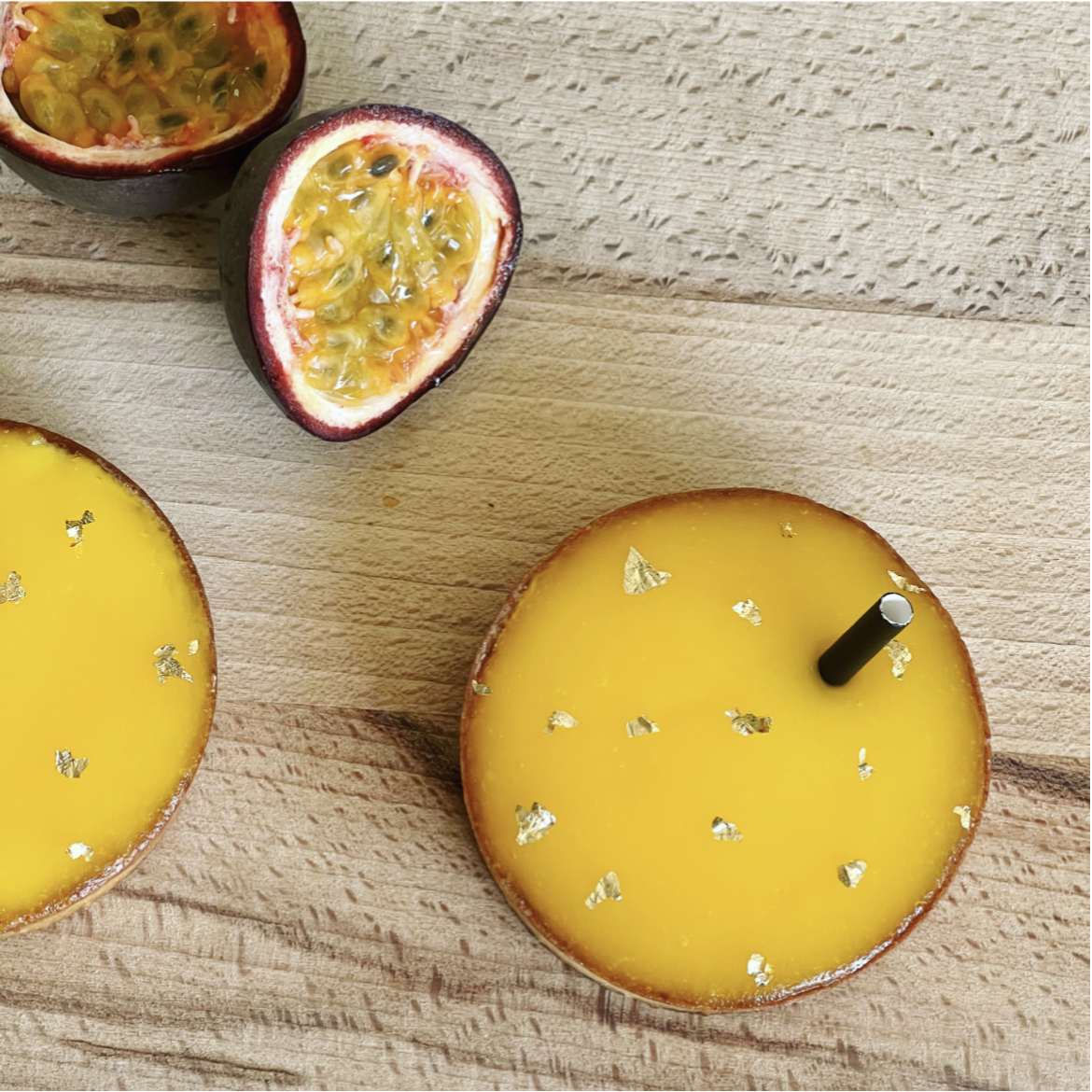 De populaire cocktail nu als taartje. Ook zonder alcohol is de combinatie van passievrucht en vanille geweldig. Cheers!